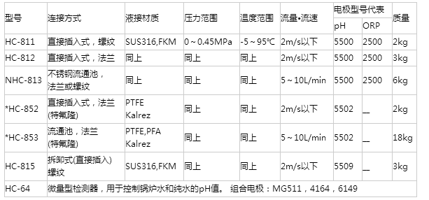 用于排水及上下水處理、排煙脫硫?鍋爐設(shè)備等一般的在線過(guò)程控制,應(yīng)用廣泛。通過(guò)連接方式和測(cè)定條件選擇合適型號(hào)。